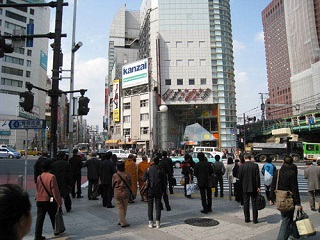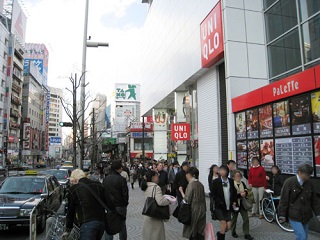 ユニクロの手前に地下鉄丸ノ内線の「新宿駅」入り口がありますが、